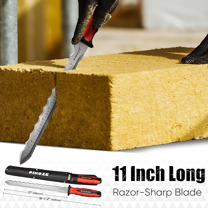 - [Rugged Stainless Steel Blade] - The insulation knife is made of premium stainless steel, which is superior in performance of rustproof and corrosion resistant. Its sharp 11" long and 7/8" wide blade allows you to handle thicker insulation materials easily and confidently