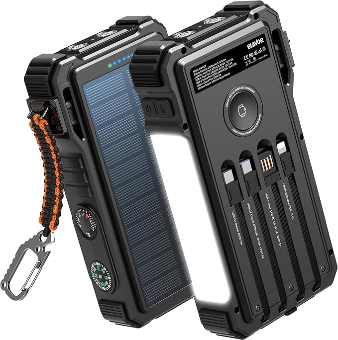 - Durable And Adventure-Ready: Built to withstand anything nature throws at it, the BLAVOR solar charger power bank is a true warrior. Its flame retardant ABS+PC shell and waterproof silicone protection make it waterproof, shockproof, and dustproof, ensuring it can handle extreme conditions with ease. No matter where your adventures take you, this charger is up for the challenge