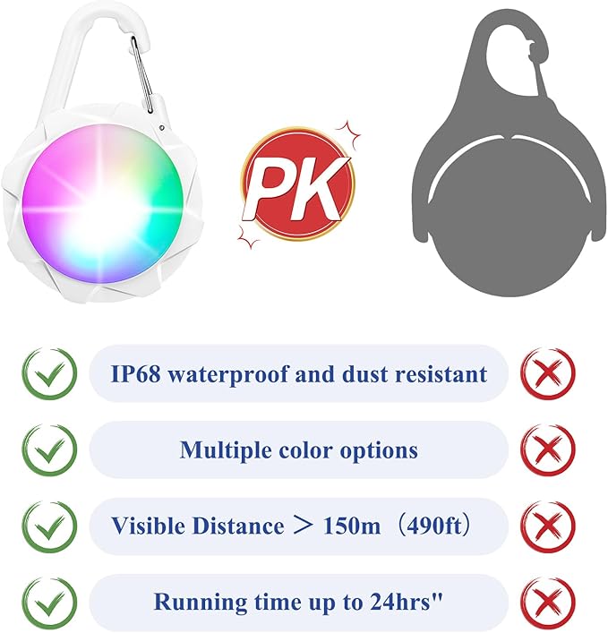 - 【Waterproof and Dust-Proof Housing】: IP68 waterproof rating dog collar light, so that your dog in the water, rainy and snow days can also be happy to play, without worrying about water. The dust-proof housing keeps the dog collar lights for nighttime clip on new forever