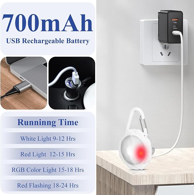 - 【Rechargeable High-Capacity Eco-Friendly Battery】: Our dog walking light has a built-in 700mAh high-capacity rechargeable battery that can work for up to 24 hours after full charging. Longer life than other light for dog collar and more friendly to the environment