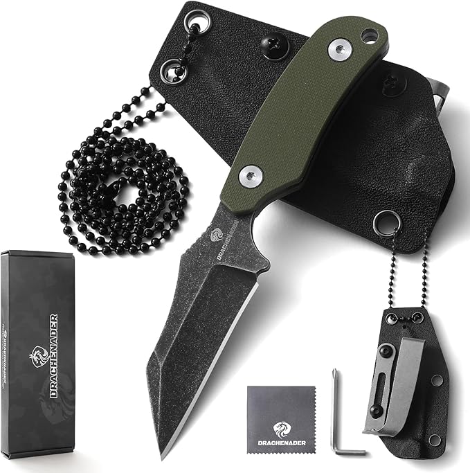 X-WH 5.78" Neck Knife with Kydex Sheath, D2 Steel Stonewashed Wharncliffe Blade with G10 Handle, Fixed Blade Knife for Men