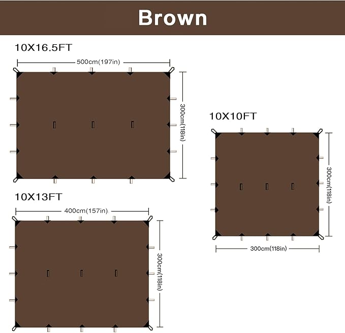 - [Waterproof & UV Protection]The waterproof tarp is made of high quality 210T Polyester with strong PU coating, weather-resistant.It can provide a safe shelter for you to escape from a sudden downpour and create dry hangout space for during a wet trip.