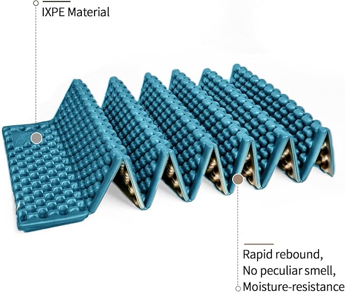 - 【Great Material】This portable sleeping pad is made of a lightweight IXPE foam that is comfortable to lay on. The closed cell foam sleeping pad ergonomically support all of your pressure points, giving you superior support and comfort all night long, no matter how you sleep.