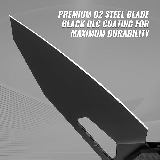 - Premium Blade: The TACRAY Tarcus folding knife features a 3.5" D2 steel blade with a black DLC coating, providing exceptional edge retention, durability, and corrosion resistance. This high-performance blade is perfect for various cutting tasks, making it an ideal companion for outdoor adventures, work, and everyday use.