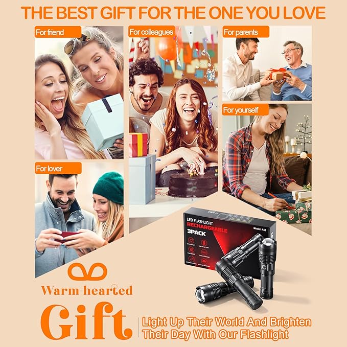 - Wide Use: Perfect for home, power outages, hurricanes, camping trips, hiking, dog walking, fishing and emergency, these led flash lights high lumens rechargeable deliver exceptional lumens to light up your surroundings effectively