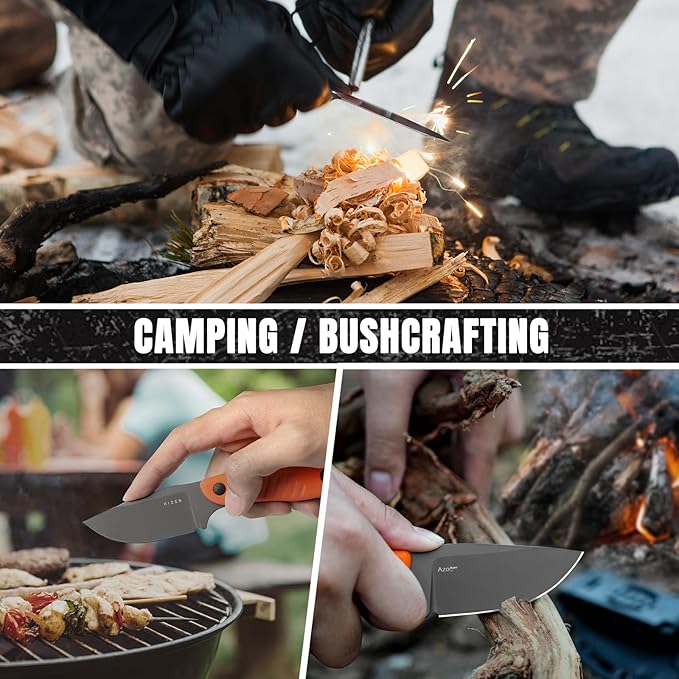 - Orange Stripe Groove G10 Handle: The G10 handle of this fixed blade hunting knife is waterproof, abrasion- and oxidation-resistant, and won’t deform with prolonged use, ensuring lasting performance in tough environments; The striped grooves offer an excellent grip for safe, secure handling, while the vibrant orange color enhances visibility if dropped