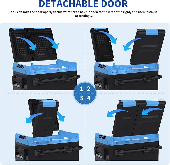 45L Dual Zone Car Refrigerator Freezer, -4℉~68℉, 48Qt Compressor Cooler with Reversible Door, Metal Handle, Dual Battery Slot, 100–240V AC / 12V / 24V DC Powered, LED Light – Ice Blue