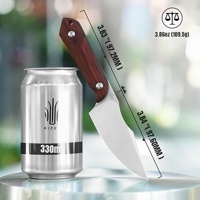 - Excellent Grip & Ergonomics: Nature red-sandalwood offers excellent grip and tactile feedback. The back of the camping knife exhibits a subtle curvature that combines aesthetics with ergonomics, ensuring comfortable thumb placement during use and enhancing the overall user experience.