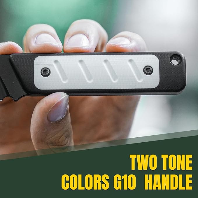 - Two Tone Colors G10 Handle: Smolt camping fixed blade knife with black-and-white G-10 handle ensures a lightweight, secure grip, making it comfortable for extended use. And Smolt hunting knife adopts a regular curved handle with 4 grooves on the handle to increase grip and aesthetics, a minimalist design