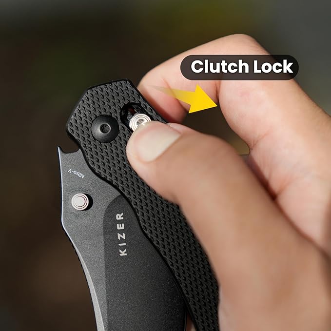- Razor Sharp Sheepsfoot Blade: Kizer Bulldog pocket knife is made of Nitro V steel with black PVD coating, it has excellent toughness, extra hardness and corrosion resistance. The sheepsfoot blade shape of folding knife is very suitable for work, providing excellent control and practicality