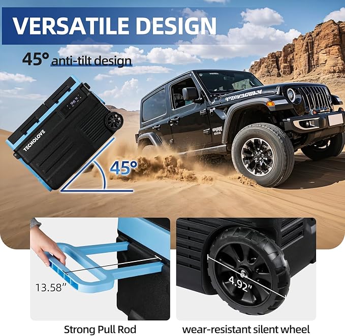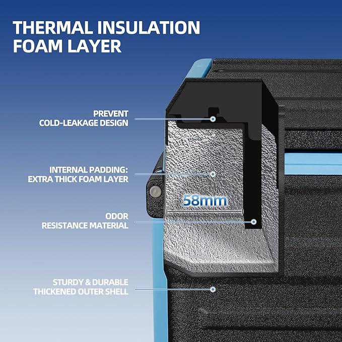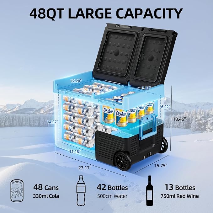 - Spacious & Safe Storage 45L capacity holds up to 46 cans. 3-level battery protection (L/M/H) prevents car battery drain. Features a soft-close magnetic door, 45dB quiet operation, built-in drain hole, and touchscreen control.