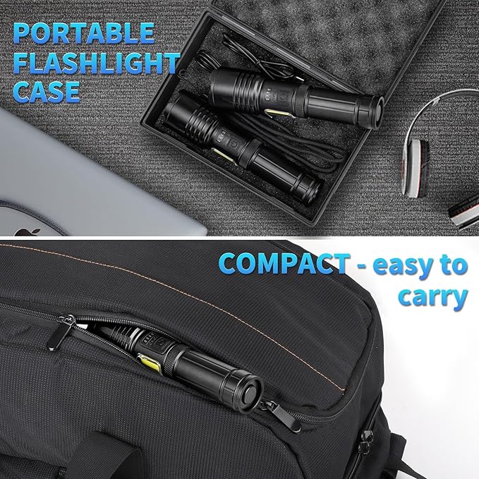 - WATERPROOF & ALUMINUM ALLOY MATERIAL: The flashlight is waterproof and can be used normally even in heavy rain outdoors. The shell is made of high-strength aluminum alloy material with a non-slip handle, exquisite and durable.