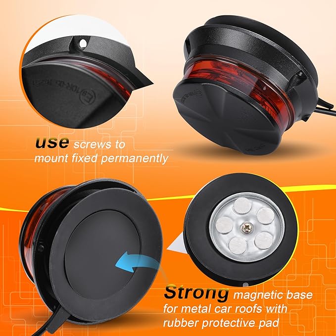 - Magnetic Base with Screw Mounting - Wineco amber flashing safety lights for truck come with screw mounting kit and magnetic mounting base, 5 strong magnets at the base, easily installed on the metal top of any vehicles,come with screw mounting method ensures a long-term stability