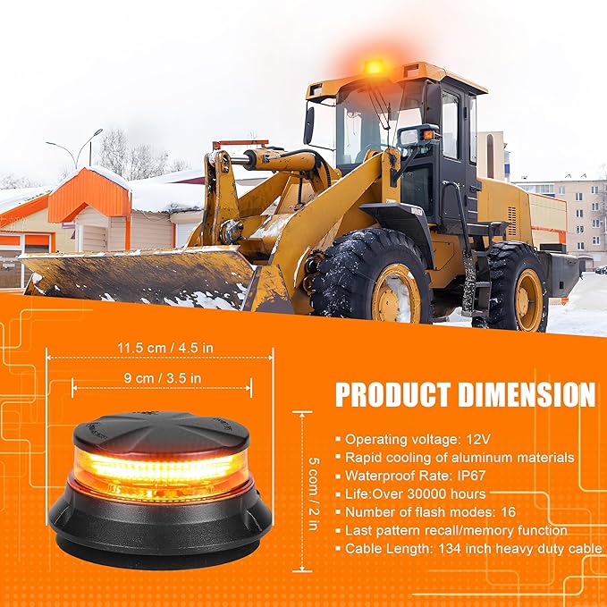 WINECO LED Amber Strobe Beacon Lights, Safety Warning Emergency Hazard Rotating Flashing Lights for Forklift Truck, Tractor, Golf Carts, ATV, Postal Car, 12-24V Magnetic Base and Permanent Mount