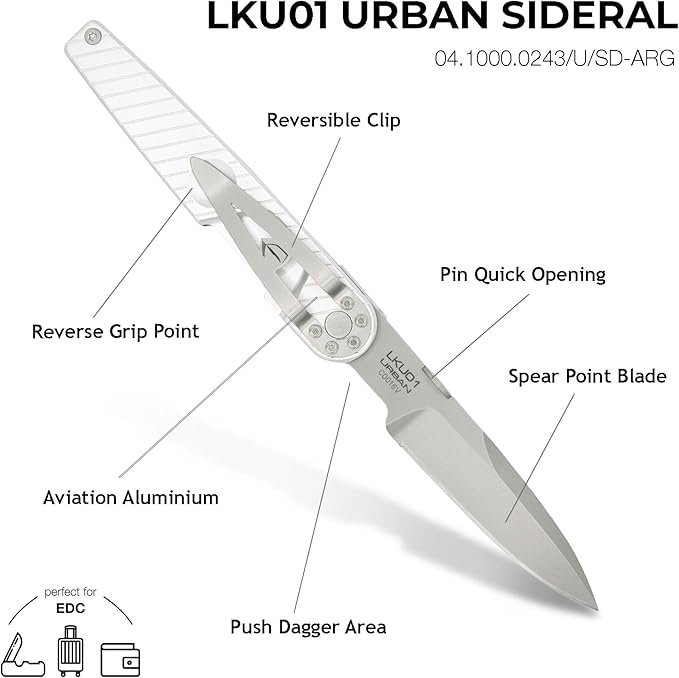 Extrema Ratio - LKU01 (Sideral), Folding Knife, Böhler N690 Steel Blade 58 HRC, Sandblast Finish, Smooth Aluminum Handle, Ergonomic Design, Durable Folding Knife, Italian Craftsmanship