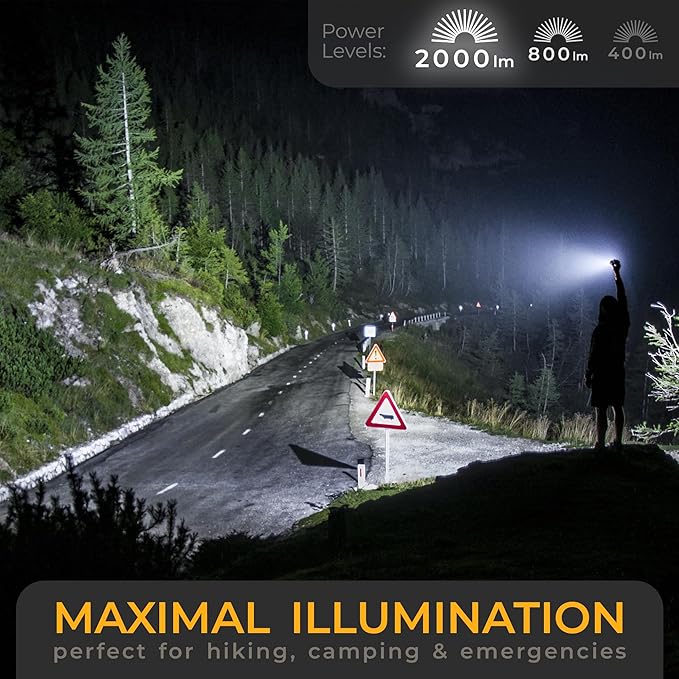 - ✅ ULTRA BRIGHT – UP TO 2000 LUMENS – Turn night into day with your LICHTMEISTER flashlight! Delivers an impressive 2000 lumens of brightness, lighting up even the darkest trails, roads, or campsites.