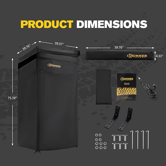 - Total Privacy, Anytime: Our camping shower tent features an awning roof that provides added privacy and protection from the elements. You can also roll it back for a refreshing breeze and improved ventilation. With an extra black lining that blocks silhouettes, this shower tent keeps you shielded from prying eyes. Designed for privacy, comfort, and security, our shower tent has you covered.