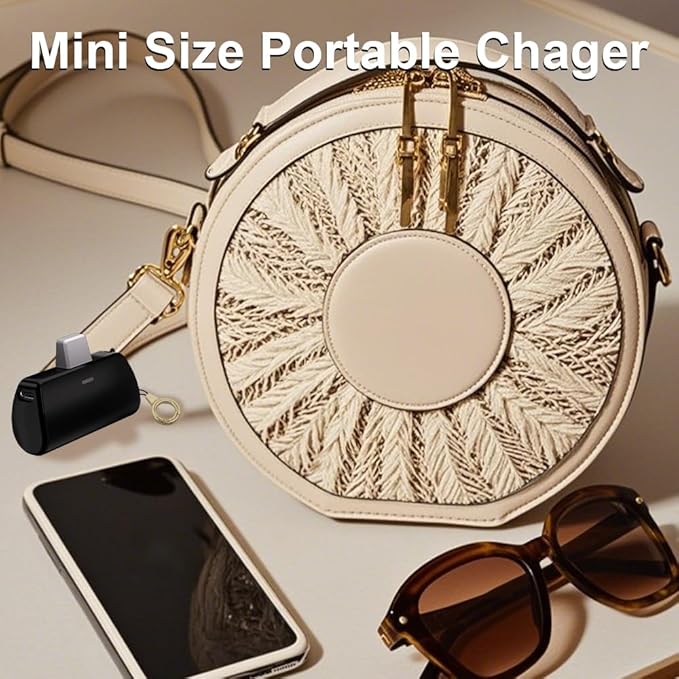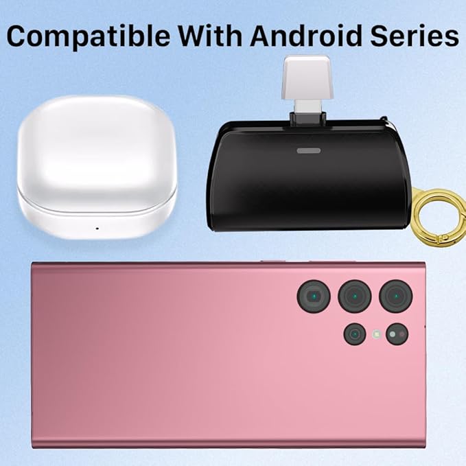 WAVYPO Keychain Portable Charger 2500mAh, USB-C Cell Phone Portable Power Bank, Compatible for iPhone 16/15/15 plus/15 pro/15 pro Max/Android/Samsung/Moto/LG (Black)