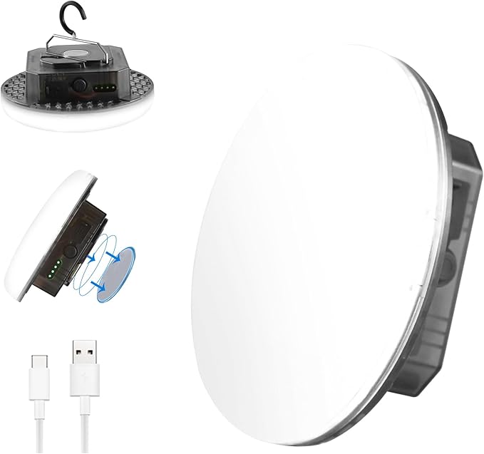 - 🌞【Convenient to Use】 Hands free, this camping light comes with a hook and magnet on the base, which allows you to hang the tent light upside down to get better light when lighting a large area. Please pay attention to check whether the magnetic suction is firm to prevent falling.