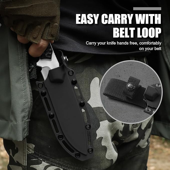 - PERFECT OUTDOOR GIFT: This fixed blade knife with sheath is a great gift for hunters, hikers, campers, and men who enjoy tactical gear. Its rugged design and high-quality construction make it a must-have vertical carry knife for any adventurer.