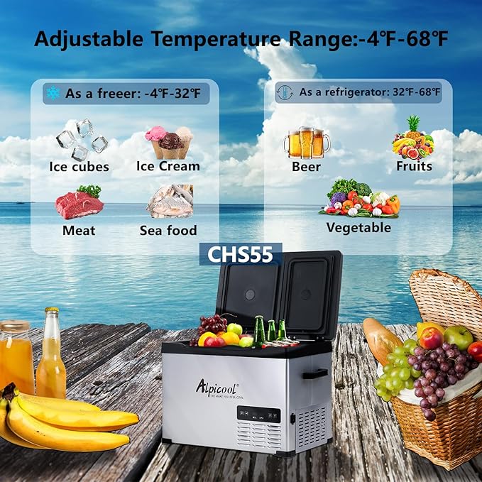 Alpicool CHS55 Dual Temperature Control 12 Volt Refrigerator 42 Quart Portable Car Fridge Freezer (-4°F~68°F) for Truck, RV, Boat, Camping and Travel