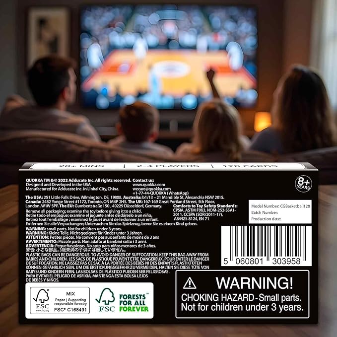 QUOKKA Basketball Fast-Paced Card Game for Kids & Adults ??128 Cards & Easy Rules ??Quick & Fun Matching Game ??2-8 Players ??Ages 8+ ??Perfect for Family Games Night, Travel and Parties
