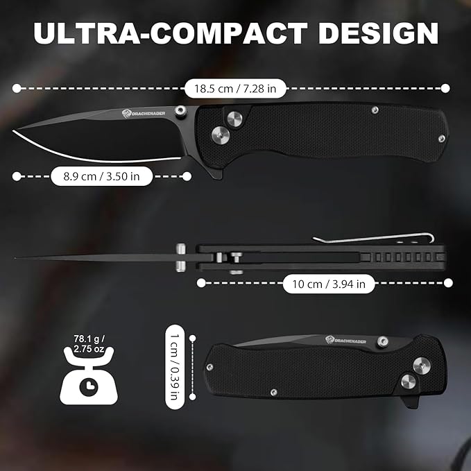 - Lightweight & Compact: With a total length of 7.28" and weighing just 2.75 oz, this pocket knife is designed for easy carry with the included nylon sheath and pocket clip.