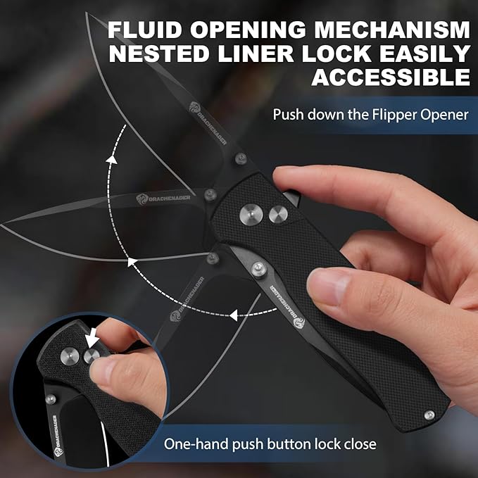 14C28N Pocket Knife for Men with Button Lock Safety Switch Y-M Tactical Folding knife with Clip, G10 Handle and Versatile Nylon Sheath for EDC, Camping, Hiking