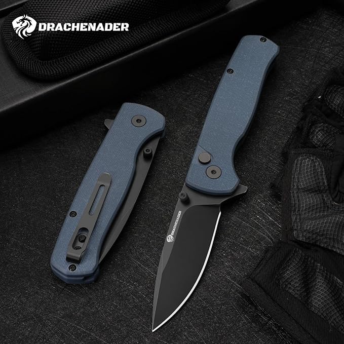- Striking Blue G10 Handle: The vibrant blue G10 handle not only stands out but also offers a secure grip and lightweight durability for confident handling.