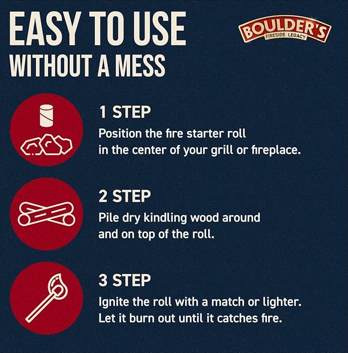 - RELIABLE, WATERPROOF & WINDPROOF - rolls ignite in wet windy conditions, camping grill, outdoor fireplace, fire pit, campfire, cooking equipment, wood stove accessories, charcoal chimney, fire starter kit