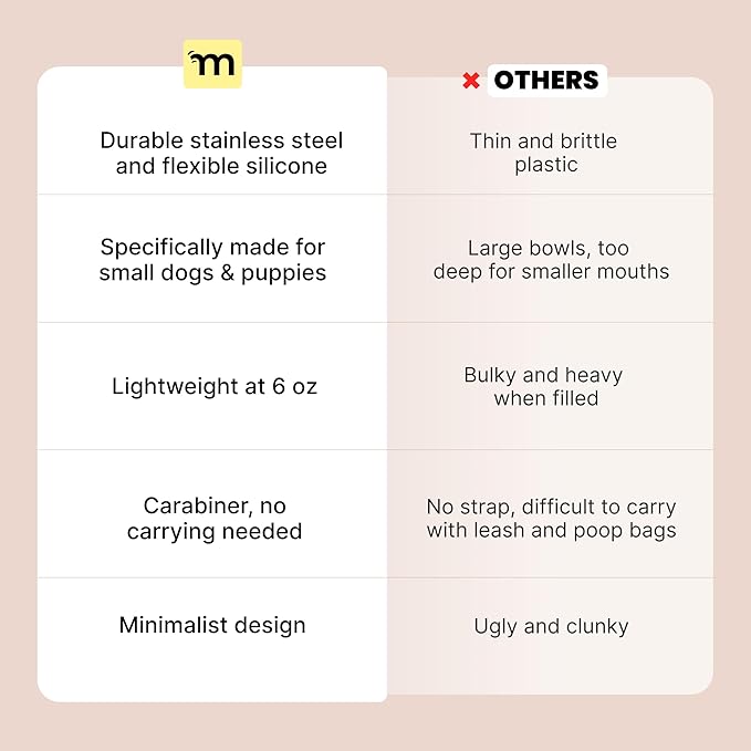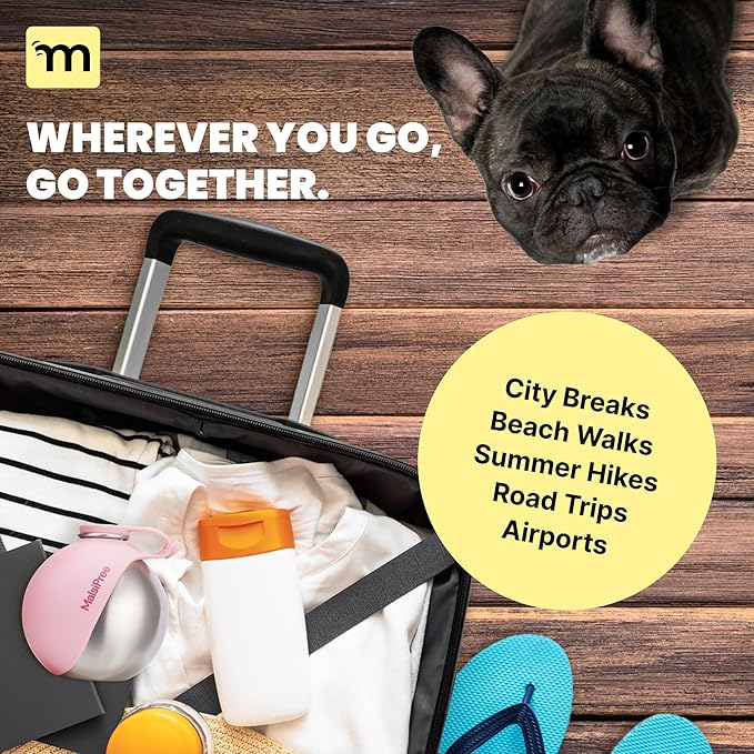 - Lightweight & No Holding Needed: Compact design for compact dogs, our dog water bottles for walking weighs just 6 oz and holds up to 10 fl oz. Plus with it's carabiner, our bottle & travel water bowl for dogs attaches to your bag, belt or leash