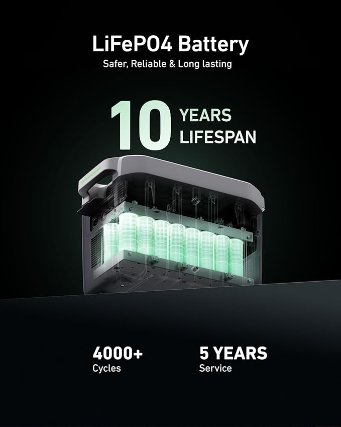 - LifePO4 Battery: LifePo4 Battery with 4000+ Cycles for over 10 years, with Battery Management System(BMS)provide long-lasting and safe user experience.