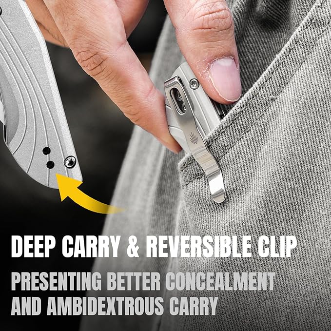 - Easy to Open and Carry: The thumb stud opener allows for quick, one-handed blade deployment, while the reversible pocket clip of the small survival knife offers flexible carry and convenient storage options
