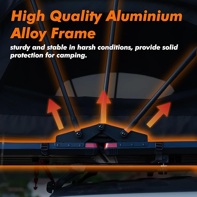 - Durable Yet Lightweight: Crafted from aerospace-grade aluminum, our tent's hard shell combines durability with a lightweight design. Aerospace-grade aluminum offers exceptional load-bearing capacity without adding bulkiness. The entire tent compresses to just 10.3 inches thick when stored, significantly boosting driving efficiency and stability.
