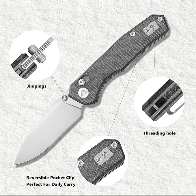 - Durable Construction: Crafted with high-quality materials, this pocket knife features a sturdy micarta handle and a sharp 14c28n steel blade for long-lasting performance.