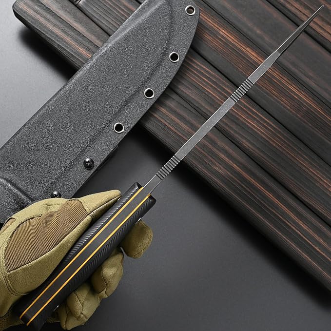 - SUPERIOR BLADE STEEL:6mm Thick Spine Sleipner Steel Blade: Razor sharp Blade with thick strong drop point , made of Swedish Tool Sleipner Steel,hardness 60-62HRC,high performance as DC53 steel especially in corrosion resistence,sturdy build beefy blade is powerful, premium steel can hold an edge very well, also easy to grind. with grossive jimping on the spine and a nice finger choil for effortless Safety cutting and Chopping works.