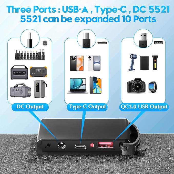 - 【Three Ports output】: Bitnovol Upgraded 30W solar panel is designed with Three output ports: USB-A,Type-C(QC3.0) & DC Output.It can simultaneously charge your mobile phone,Bluetooth Earphones,laptop,tablet,ipad,GPS,USB fan,Ring battery camera or other USB devices quickly.The built-in smart IC chip can intelligently identify your device and maximize its charging speed while protecting your device from overcharging and overloading.Solar Panel Kit DC for Portable Power Station,USB Solar Panel Battery Charger for RVs,USB-C solar panel for phone.QC3.0 USB Ports & DC Output(10 Connectors) for Outdoor Camping Van RV Trip