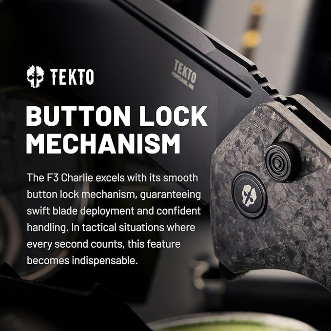 - SMOOTH BUTTON LOCK - Designed, engineered, and assembled in the USA, the F3 Charlie features a smooth button lock mechanism for fast blade deployment. Offering confidence and ease of use in vital moments, it ensures seamless functionality.