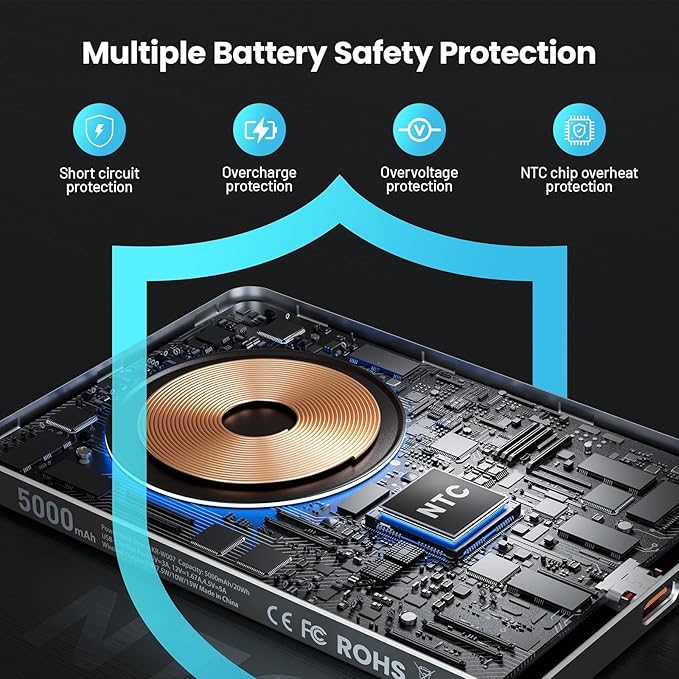 - [Certified Safe]Your safety is our priority,This ultra-slim Portable Charger meets stringent UL, CE, FCC, and RoHS safety certifications. Safe for travel, daily commutes, and all-day use.