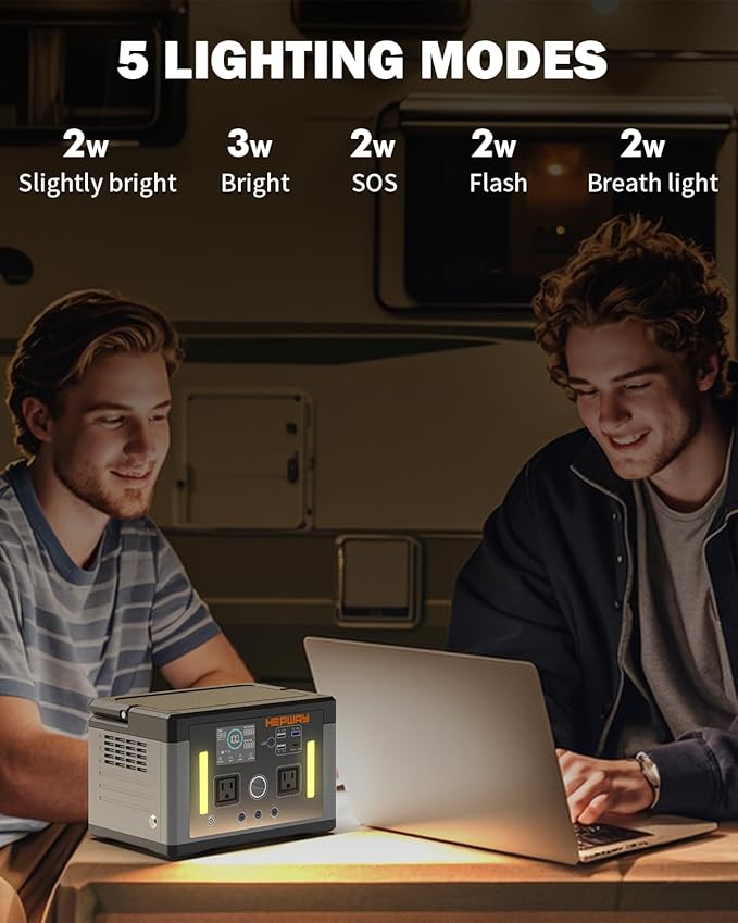 - Powerful and Easy to Carry: Equipped with a high-definition easy-to-read LCD screen, accurately displays power, input/output labels, etc. With 5 LED lighting modes, weighing only 12 pounds, the foldable handle and compact size make the power station easy to carry for outdoor activities and home emergencies