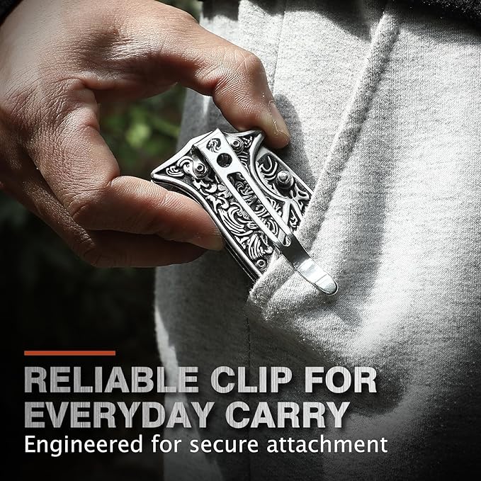 - Secure Lock Mechanism & Pocket Clip: Designed with a reliable locking mechanism, this folding knife ensures safe operation during use. The integrated pocket clip adds convenience, allowing this pocket knife for men to carried in your daily adventures.
