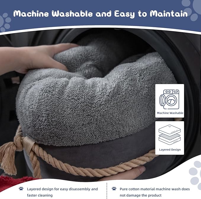 - Easy to Wash, Easy to Love: Machine washable for effortless cleaning—simply use cold water on a gentle cycle to keep it fresh. The removable cushion allows for spot or separate washing, so your pet’s space stays tidy, hygienic, and always welcoming