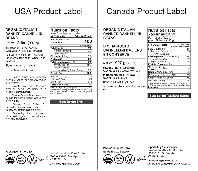 - ✔️LONG SHELF LIFE: Conveniently packaged in a 14-ounce can, Organic Italian Canned Cannellini Beans from Food to Live have a shelf life of up to 3 years. Refrigerate after opening and use within 3 days.