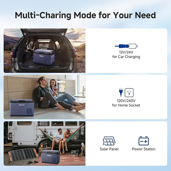 - 【3-Stage Voltage Protection】 Smartly safeguards your car battery! BodegaCooler 12V refrigerator reduces risks of over-discharge/overload—perfect for camping coolers paired with cars, trucks, or portable power stations.