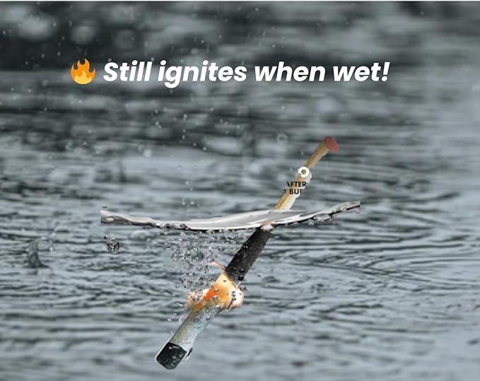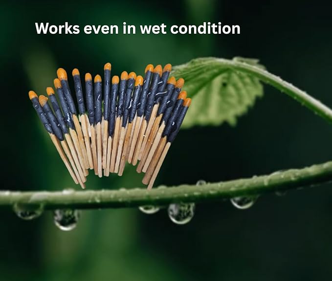 - 【Fire in Any Weather – Long Matches with Extra Striker】 Each match is 3 inches long with a 2-inch ignition head, producing a strong 15-second flame—even after soaking in water or being buried in dirt. Each box contains 20 waterproof matches and comes with a spare striker paper for added reliability in critical moments.