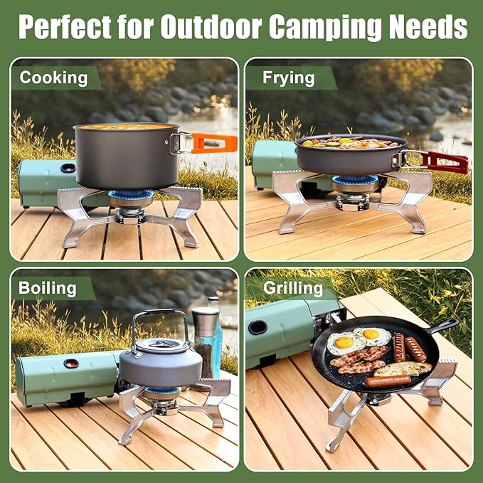 - [Safety First] - Designed with an anti-leakage system and magnetic over-pressure protection valve, the stove automatically cuts off gas supply if pressure is too high, ensuring safe and worry-free operation. With 3-inch tall legs, the stove keeps your cooking surface elevated, preventing heat damage to tables or other surfaces. Ideal for safe use on any outdoor setup.