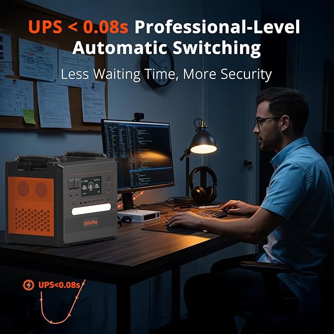 - 【1.5Hr ULTRA-FAST DUAL CHARGE & SOLAR-READY】 Recharge 0-100% in 1.5hrs via AC+solar dual input (1100W max), 2x faster than similar solar generators. Compatible with SolarPlay 200W panel for off-grid energy. Adjustable input (300W-1100W) ensures safe charging from cars/generators.