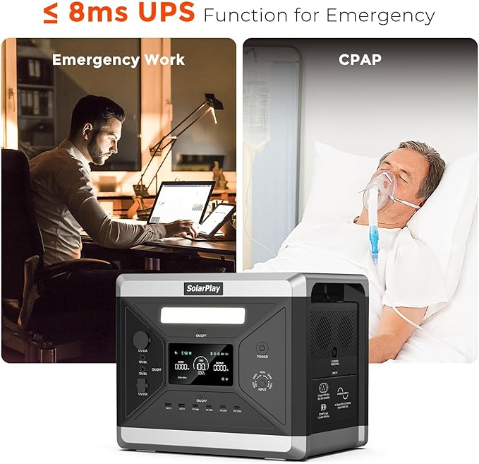 - 【PORTBALE DESIGN & FAST SOLAR CHARGING】 23% lighter (21.5 kg) and compact, SolarPlay’s portable power station ideal for camping and road trips. Recharge in 1.5 hours via AC or solar with adjustable input power (300W-1100W).