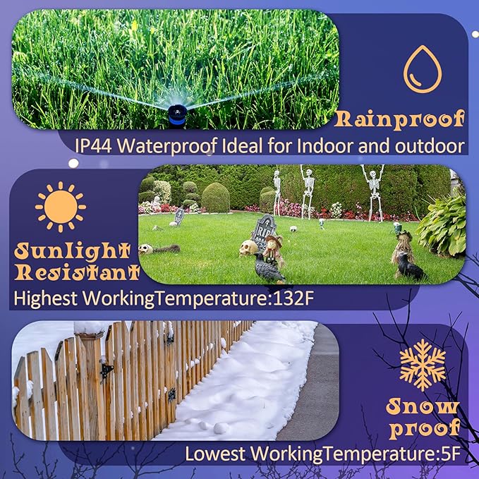 - 360 Degree Festive Charm: this Day of the Dead landscape decorative lighting has dynamic patterns; With the ability to rotate 65 degrees, it casts its enchanting light in assorted direction, splashing your surroundings with dynamic, moving patterns