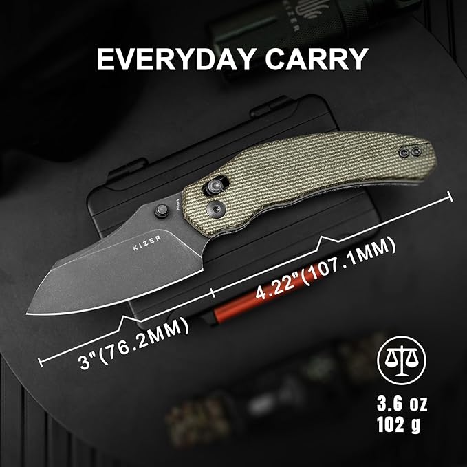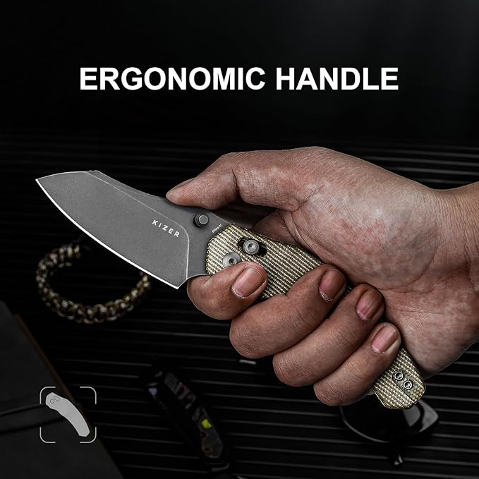 - Razor Sharp Sheepsfoot Blade: Kizer Bulldog pocket knife is made of Nitro V steel with gray stonewashed, offering excellent toughness, heightened resistance to scratches and signs of wear and tear. The sheepsfoot blade shape of folding knife is very suitable for work, providing excellent control and practicality.